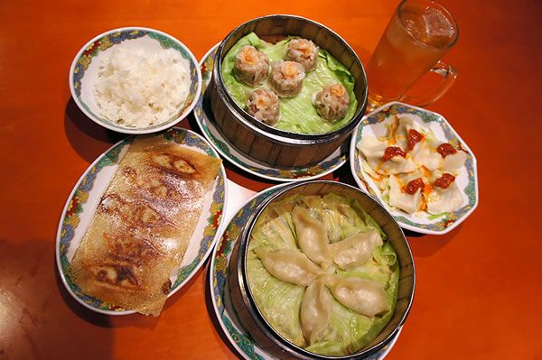 ウーロン茶 \200 羽根つき焼ギョーザ \300 蒸ギョーザ \350 エビ焼売 \600 紅油水ギョーザ \600 ライス \200 計 \2,250 1人前